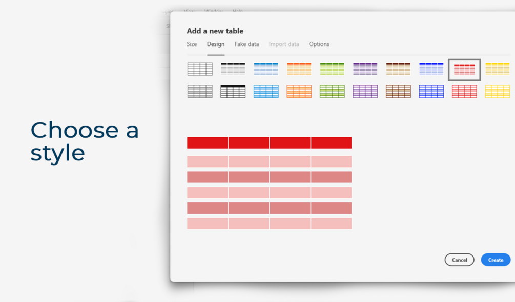 Save time creating large data tables with any number of rows and columns, and adjust font settings, and themes